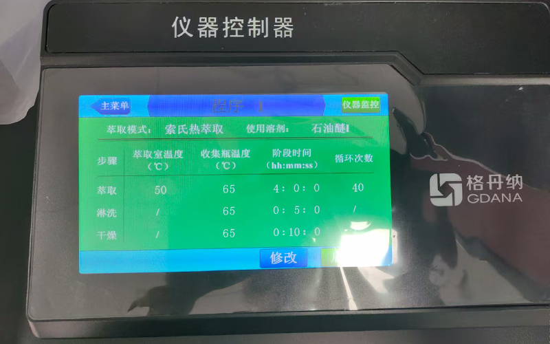參數(shù)設(shè)置:通過(guò)外接控制器的大屏幕界面,演示如何根據(jù)檢測(cè)需求選擇萃取方法(如經(jīng)典索氏萃取法、熱萃取法),并設(shè)置加熱溫度、萃取時(shí)長(zhǎng)等參數(shù),同時(shí)講解參數(shù)保存與調(diào)用功能,方便后續(xù)同類樣品檢測(cè);