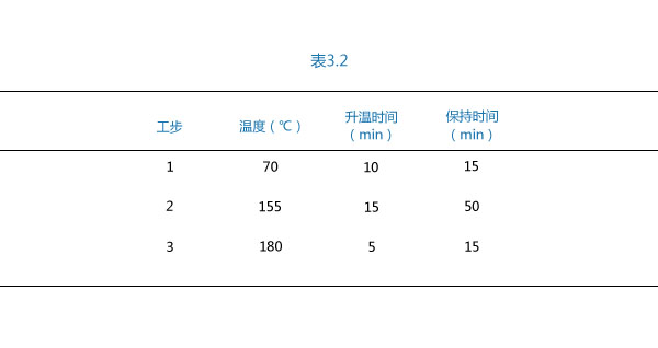 測As時(shí)采用如下消解步驟:稱取0.3g樣品小麥粉加到消解管,加入硫酸2ml,硝酸3ml,高氯酸0.5ml,左右搖動(dòng)玻璃管使樣品與消解液充分混合。采用如表3.3的消解程序啟動(dòng)石墨消解儀,冒白煙即可。消解完后,取下消解管,冷卻至室溫,加入硫脲+抗壞血酸做還原劑,定容待分析。