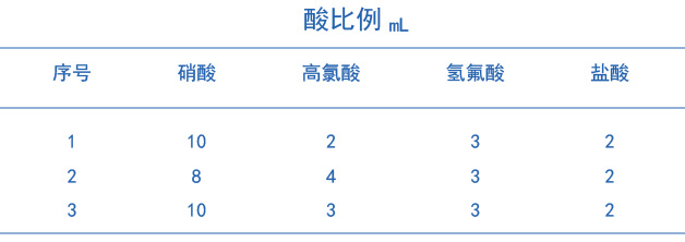 三種不同消解方式的酸量比例見圖表2。
