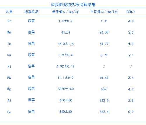 Cr,Mn,Zn,Cu,Ni,Pb,Mg,A1和Fe標(biāo)準(zhǔn)溶液(1000mg/L),菠菜GBW10015國家標(biāo)準(zhǔn)物質(zhì)。HNO3為BV級(jí);H202 。