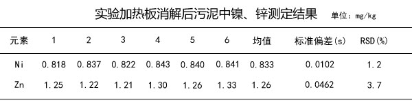 由上面表中可以看出,污泥中的鎳、鋅濃度均處在較低水平,6次測定結(jié)果的精密度和準(zhǔn)確度均較好。