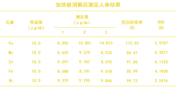 實(shí)驗(yàn)陶瓷加熱板消解后測(cè)定人參結(jié)果