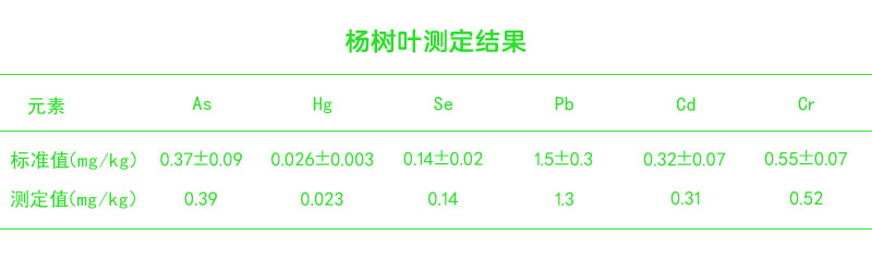 對國家標(biāo)準(zhǔn)物質(zhì)楊樹葉按以上實驗電熱板濕化消解的方法處理后,按上述分析條件分別進行多次檢測,并用一次消解進行多種重金屬檢測共7次的結(jié)果。