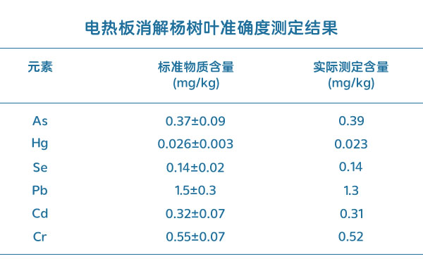 加熱板消解楊樹葉準(zhǔn)確性測定結(jié)果