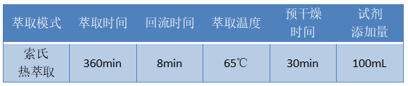 精確稱樣品2.0g (記為m) , 放入纖維素濾筒內(nèi),并覆蓋上一層脫脂棉。