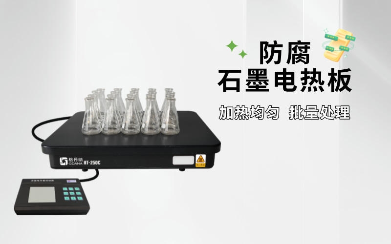 2. 石墨電熱板:石墨電熱板以石墨為表面加熱材料,具有優(yōu)秀的耐高溫性和耐腐蝕性。石墨的導(dǎo)熱性好,能夠在高溫下迅速而均勻地傳遞熱量,不易產(chǎn)生形變或損壞。格丹納石墨電熱板HT-250C另外在加熱臺(tái)面增加特氟龍涂層防止強(qiáng)酸堿腐蝕。